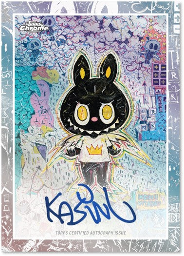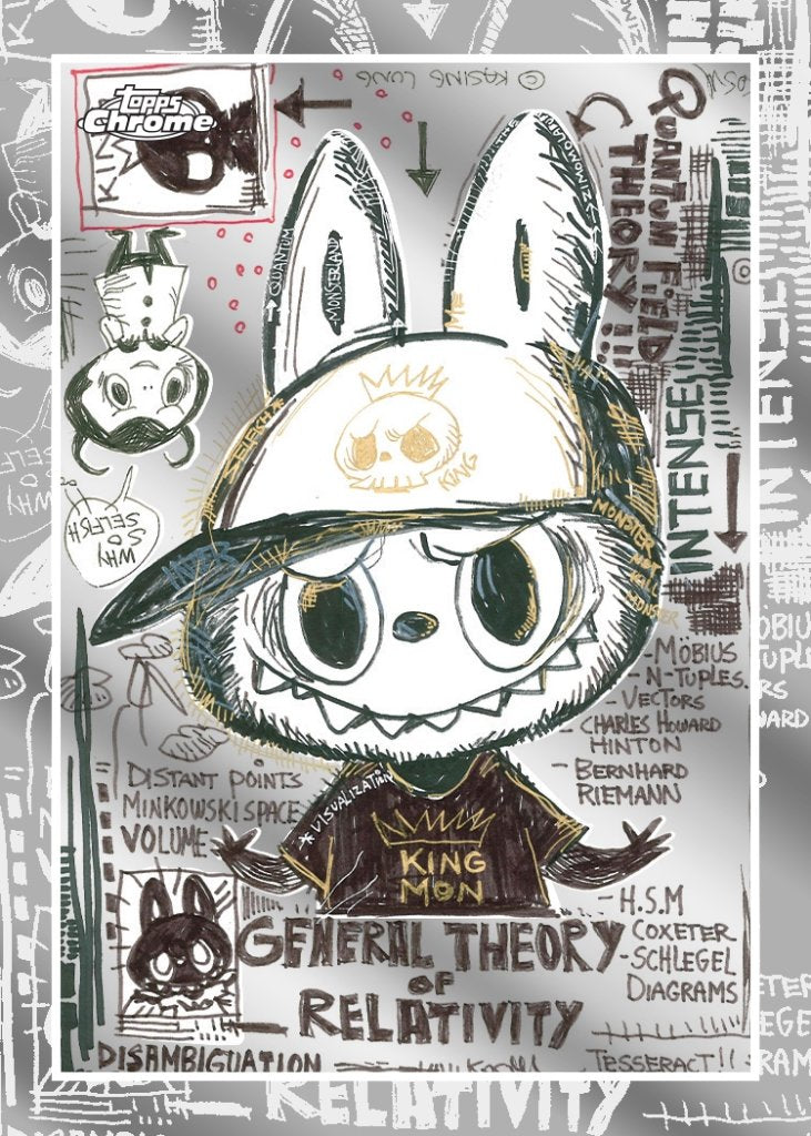 Topps has partnered with How2Work and Pop Mart for the first time ever to bring you the 2025 Topps Chrome® Labubu 10th Anniversary box! Each box includes four Chrome® base cards and one Chrome® parallel, plus a collectible keyring case to display your card just like your Labubu! Cards feature artwork from Labubu creator and artist Kasing Lung. Collectors can chase vibrant Chrome® parallels including Refractors, 10th Anniversary logo borders and 1-of-1 SuperFractors, along with ultra-rare Artist Autographs.